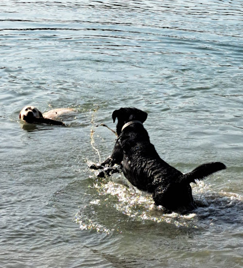 Eigentlich wollte ich mit dem Kauf des Rüden aus der Ukraine einer Labizüchterin helfen. Das gelang. Aber was nachher kam, konnte ich nicht abschätzen. Weil der Tollwuttiter zu niedrig war, musste ich Jack in "Einzelhaft" halten. 100 Tage Heimquarantäne! Das hiess, Sally in den unteren Stock verbannen, jegliche Hundekontakte waren verboten, genauso wie unnötiger Besuch von Menschen, alle 2 Wochen musste ich Jack beim Tierarzt vorstellen zwecks Berichts ans Vet-Amt. All dies hat Jack zusammen mit mir gut hinbekommen. Ich war jeden Tag sicher 4x unterwegs, und legte jeden Tag im Schnitt ca. 10km zurück. Der Hundetrainer gab uns sporadisch Einzelunterricht, jeweils nur eine halbe Stunde. Jack ist mit viel Arbeit zu einem starken, grossen Rüden herangewachsen. Er ist ein ganz wunderbarer Kerl. Nun kommt das wahre Leben. Hier finden Sie Bilder von Jack